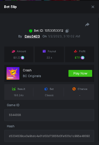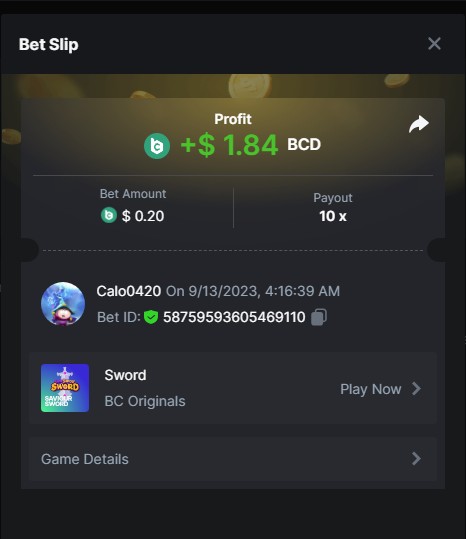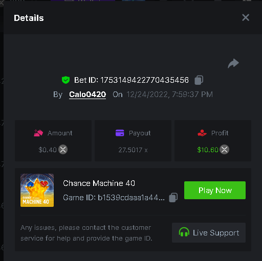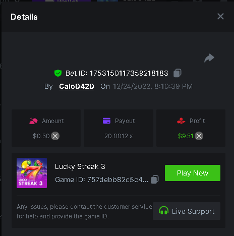 Calo0420 replied to BCGame_Maxim's topic in VIP Challenges
