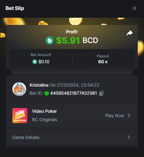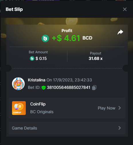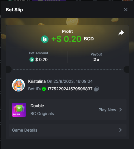 2. Easy 1. Deposit Txid: 4434113e293eb472a7b171d17fbe54cbfb34631824705869716f789ec0040181 2. Instagram: @LincesaMdq 3. Instagram Post: https://www.instagram.com/p/DHXgr4JspCP/?igsh=ZWgwenpqYXVreTF 4. Twitter: @Kristalinauwu 5. Like, retweet & tag: @Kristalinauwu https://x.com/Kristalinauwu/status/1901728054969274750 6. Follow BCGame Facebook: Gisela Gall 7. Limbo: https://bc.co/game-detail/1825513481832927011 8. Sports bet: Ticket ID: 2513820866270339253 9. Arabian Secret: https://bc.co/game-detail/1825439374915515681 10. Sugar Fiesta 1000: https://bc.co/game-detail/1825441146495751971 11. 2FA activated: Medium 1. Deposit TxID: 4d707ead402ff5771e270374a5fc42f5798fdc6bd13d6bf975996a5316cb53ff TxID: 39d9776a52287c2bdc8bea45c1a751ae618ef4976ed8907766ce39ac0603937f 2. Crash: https://bc.co/game-detail/1825546630112045702 3. Plinko: https://bc.co/game-detail/1825430753182757665 4. Roulette: https://bc.co/game-detail/1825527742035924514 5. Starshine Princess 1000: https://bc.co/game-detail/1825598330617384993 6. Stellar Rush: https://bc.co/game-detail/1825601183186807841 7. Keno: https://bc.co/game-detail/1825612623614982433 8: Poker Ways: https://bc.co/game-detail/1825547398747784483 9. Wukong: https://bc.co/game-detail/1825595350268898850 10. Lottery and Porsche tickets: 11. Sports bet Combo Ticket ID: 2512055034057994476 Hard 1. Wheel: https://bc.co/game-detail/1825529693239491107 2. Crash: https://bc.co/game-detail/1825774085023770502 3. CoinFlip: https://bc.online/game-detail/1825620056214876707 4. Stellar Rush: https://bc.co/game-detail/1826242186137422626 5. Plinko: https://bc.co/game-detail/1825459660201698850 6. Limbo: https://bc.online/game-detail/1826864347105905955 7. Hashdice: https://bc.online/game-detail/1826862839661034018 8. Sea of Olympus 1000: https://bc.co/game-detail/1825539068560977186 9. Gold of Olympus: https://bc.online/game-detail/1826344599486243619 10. Duck Hunter: https://bc.co/game-detail/1825605420251285539 11. Sports bet combo Ticket ID: 2513187573116055908