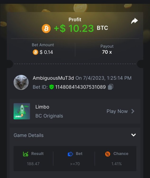 gofys replied to BCGame_Maxim's topic in VIP Challenges