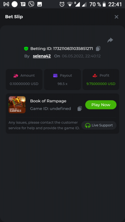 Betting ID: 47900408747661818 х41 Betting ID: 47900408747661819 х1 Betting ID: 47900408747661820 х1 Betting ID: 47900408747661821 х1.5