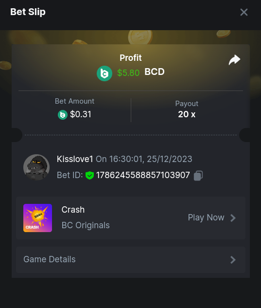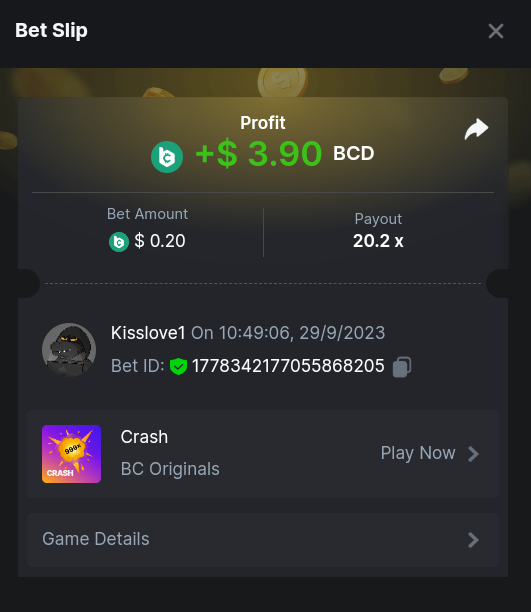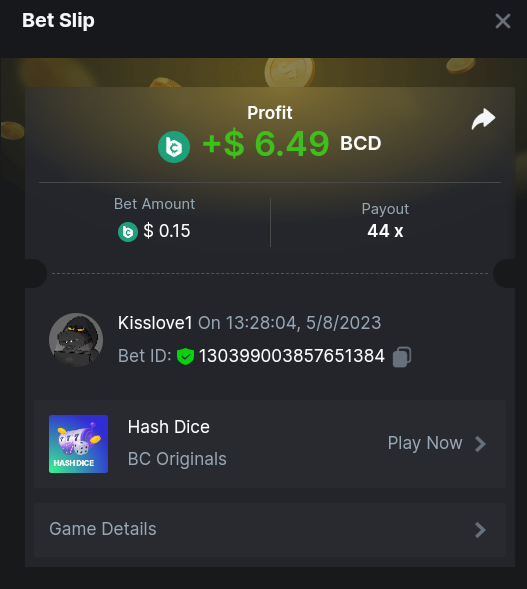 1. Easy 1 Clasicdice https://bcgame.im/#/sd/11VLF907DFX3X7 2. https://bcgame.im/#/sd/11VX8NCX7RXVGN 3. Enable 2FA for your BC.Game account + Verify E-Mail & Phone Number (If 2FA already activated, keep it activated): DONE 4. 2387191660871295143