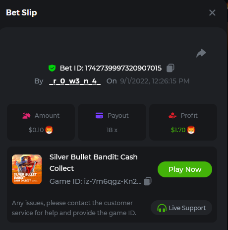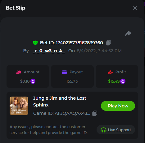 x100 https://bc.game/sd/?sd=10SDQE72Z5826R x11 https://bc.game/sd/?sd=10SDQM9NQ2RZF7 x81.5 https://bc.game/sd/?sd=10SDQYHSOHUHOZ x180 https://bc.game/sd/?sd=10SDT1IM7G8R2R x17 https://bc.game/sd/?sd=10SDRB8WUCUEXF 17.10 is considered as x17 right?Gamemaster @Niobium oh never mind someone told me the x17 is in tiles classic hehehe all good now got covered. got 4 entries -