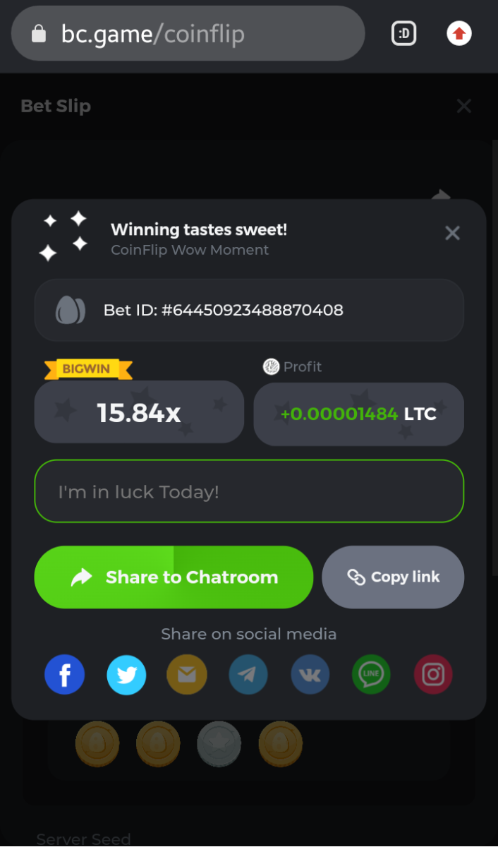 : چالش بیشترین تعداد از ضرایب زیر را در بازی شیر یا خط کسب کنید وامتیازتان را تکمیل کنید. هر ضریبی که گرفته می شود 1 امتیاز برای شما ثبت می شود و حداکثر 10 امتیاز به حساب می آید : لیست ضرایب خواسته شده | 3.96x | 7.92x | 15.84x | 31.68x | 63.36x | 126.72x | 253.44 | 506.88x | 1013.76x | 2027.52x | ──── ❖ ── ✦ ── ❖ ──── : شرایط چالش حداقل پایه شرط : مینیموم تمامی ارزها به جز جی بی و بیبی- ✫ حداقل سطح کاربر : تمامی لول ها- ✫ : نکات مهم هر کاربر برای هر ضریب مجاز به ارسال فقط 1 شات اسکرین می باشد .✪ از ارسال شاتهای اضافی برای یک ضریب ، خود داری کنید .✪ ارسال لینک شرط به همراه شات اسکرین الزامی می باشد .✪ ادیت ریپلای ها مجاز می باشد .✪ در صورت تساوی امتیازات ، بازیکنی که پایه شرط بالاترین ضریب ارسالی اش بیشتر باشد (از نظر دلاری) برنده خواهد بود . اگر در میزان و تعداد ضریب ها مساوی باشد، کسی که اولین شرط خود را زودتر ارسال یا ویرایش کرده است در رتبه بندی بالاتر در نظر گرفته می شود . حداقل امتیاز برای پذیرش ، 4 امتیاز می باشد . امتیازهای کمتر از آن بررسی نخواهند شد ═══════ ◦ ★ ◦ ═══════ جوایز نفر اول : برنده 50 دلار نفر دوم : برنده 25 دلار نفر سوم : برنده 15 دلار نفرات چهارم تا هفتم : نفری 2 دلار زمان پایان چالش : سه شنبه 6 تیر / 27 ژوئن ساعت 23:59 نکته بسیار مهم : دوستان دقت کنید از آخرین صفحه ( که قبل از اشتراک در چتروم دیده می شود ) شات گرفته و در انجمن ارسال کنید . لطفا مطابق نمونه ارسالی عمل کنید نمونه شرط اشتراکی : https://bc.game/sd/?sd=10LV1IY0NTFW9F