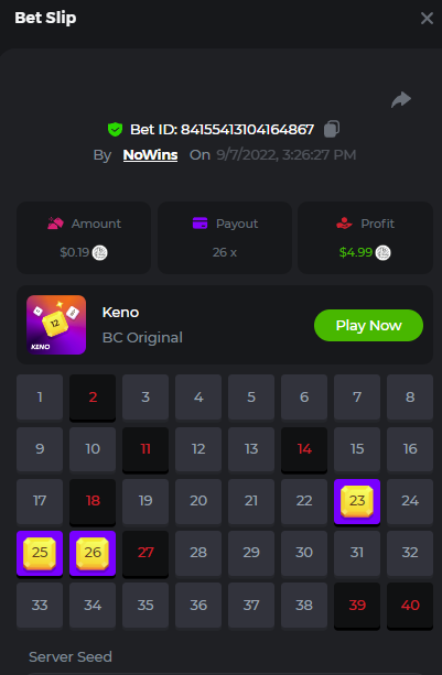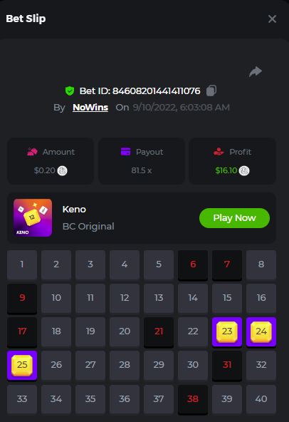 $2,500 Prestige Keno Multiplayer Challenge #45