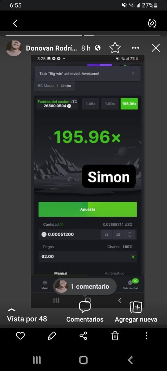 Grijander Posted January 18, 2023 Share Posted January 18, 2023 On 1/11/2023 at 6:44 AM, cindypp said: Hide contents Cuentame tu mayor victoria, deja tu comentario y sorprendete ! Fue una gran victoria pero he conseguido alguna más abultada que esta. Link to comment Share on other sites More sharing options...