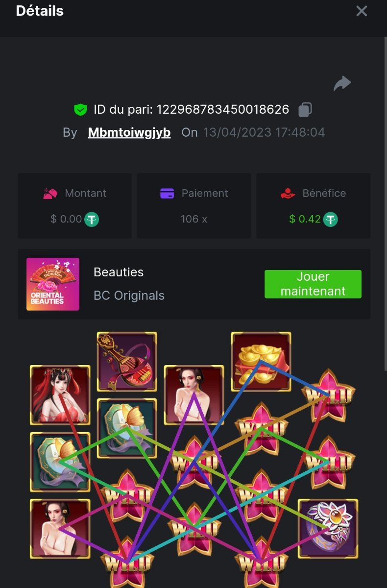 Member AkSyEn03 Posted April 12, 2023 Member Share Posted April 12, 2023 🏵ÉVÉNEMENTS DU WEEK-END🏵J'autorise tous les participants de chaque pays !! I allow all participants from each country!!DÉFI Heure de début :12/04/2023 à 15h. Heure de fin : 00h le 13/04/2023 week defi n'est ce pas merveilleux ^^ Quel est le défi ? Jeu : BEAUTIES Atteindre le plus HAUT MUTLIPLICATEUR dans le jeu BEAUTIES Minimum pour la qualification est de x 30 SI égalité sur un multiplicateur , le filtre sélectionnera en 2éme la somme et sera prise en compte .VIP minimal > Il n'y a pas de niveau VIP minimum.Pari minimum : 0.003$ Attention JB non pris en compte Récompenses12$6$4$4eme place à 10 -ème place 2$ sans respect des conditions aucun gains ne sera remis !Accédez au jeu pour choisir votre ID de pari, cliquez sur l'icône Partager (↷) puis sur Copier le lien Dans le même message, téléchargez une capture d'écran de votre gain en cliquant sur l'ID du jeu et En mode USD ON1. N'utilisez pas plusieurs comptes 2. Les paris soumis avant ou après la date et l'heure limite ne seront pas acceptés 4. tout manquement au conditions de bonus, vera son paris annulé. alors lisez bien avant de commencer et BC Game vous souhaite des moments heureux et profitablesBonne chance, que le meilleurs gagne !! ANGLAIS 🏵WEEKEND EVENTS🏵I allow all participants from each country!!CHALLENGEStart time: 12/04/2023 at 3 p.m.End time: 00h on 13/04/2023 .challenge week isn't it wonderful ^^What is the challenge?Game: BEAUTIESReach the HIGHEST MUTLIPLICATOR in the game BEAUTIES Minimum for qualification is x 30 IF tie on a multip ,the filter will select in 2nd the sum and will be taken into account.Minimum VIP > There is no minimum VIP level.Minimum bet: $0.0003Attention JB not taken into accountAwards1.$122.$63.$44th place to 10 -th place $2 without respecting the conditions, no winnings will be given!Go to the game to choose your bet ID, click on the Share icon (↷) then on Copy link In the same message, upload a screenshot of your win by clicking on the game ID and In USD mode WE 1. Don't use multiple accounts 2. Bets submitted before or after the cut-off date and time will not be accepted 4. any violation of the bonus conditions will void their bets. so read well before you start and BC Game wishes you happy and profitable moments Good luck, may the best win!! Link to comment Share on other sites More sharing options...